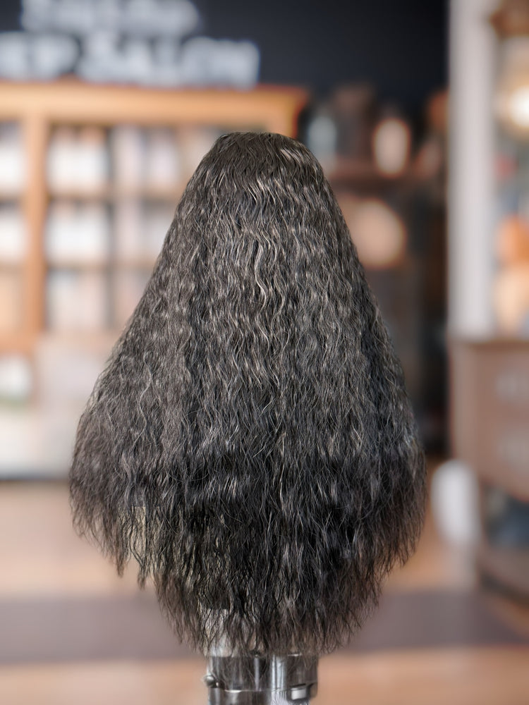Premium 24-inch textured wig featuring natural black waves with realistic volume. Our 13x4 HD lace frontal creates an undetectable hairline with a natural-looking scalp and versatile parting options. This lightweight 150g density provides the perfect balance of fullness and authenticity.